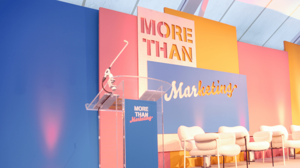 The backdrop, using a playful mix of colours and panels, was inspired by ITV’s cutout logo and bold event identity. Camden House acted as a blank canvas for us to develop a consistent look and feel and set the tone for the event.